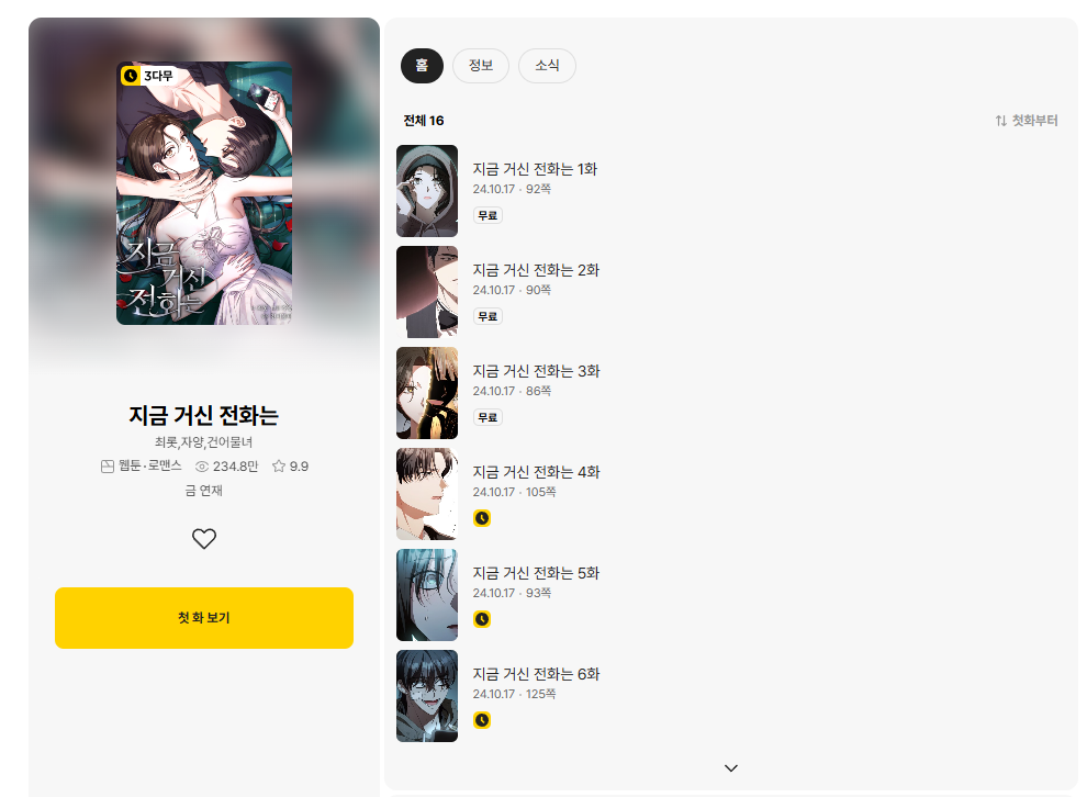 원작 소설과 웹툰의 팬이라면